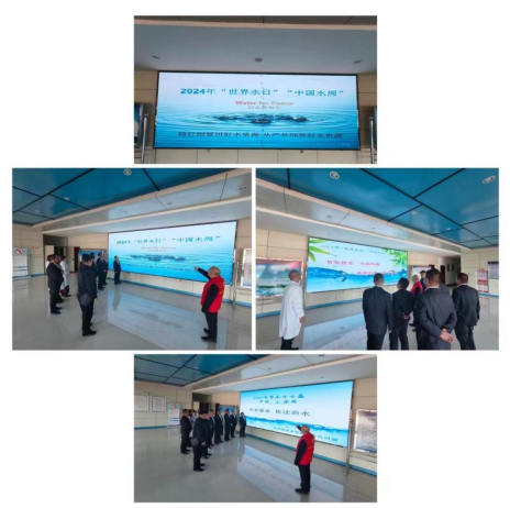 機關(guān)黨支部黨員志愿者帶領(lǐng)下,與會代表在忻州市節(jié)水教育基地展板前認(rèn)真學(xué)習(xí)了習(xí)近平總書記關(guān)于保護(hù)水資源的系列講話精神。在忻州市節(jié)水教育基地忻州市水資源電子沙盤前了解忻州市水資源現(xiàn)狀,聽取了志愿者講解“節(jié)水優(yōu)先、空間均衡、系統(tǒng)治理、兩手發(fā)力”的治水思路和全省“三縱九橫、八河連通”水網(wǎng)體系建設(shè)成果。在水質(zhì)檢測大樓門廳大顯示屏前聽取了志愿者講解2024年“世界水日?中國水周”宣傳標(biāo)語深刻內(nèi)涵和節(jié)水常識。