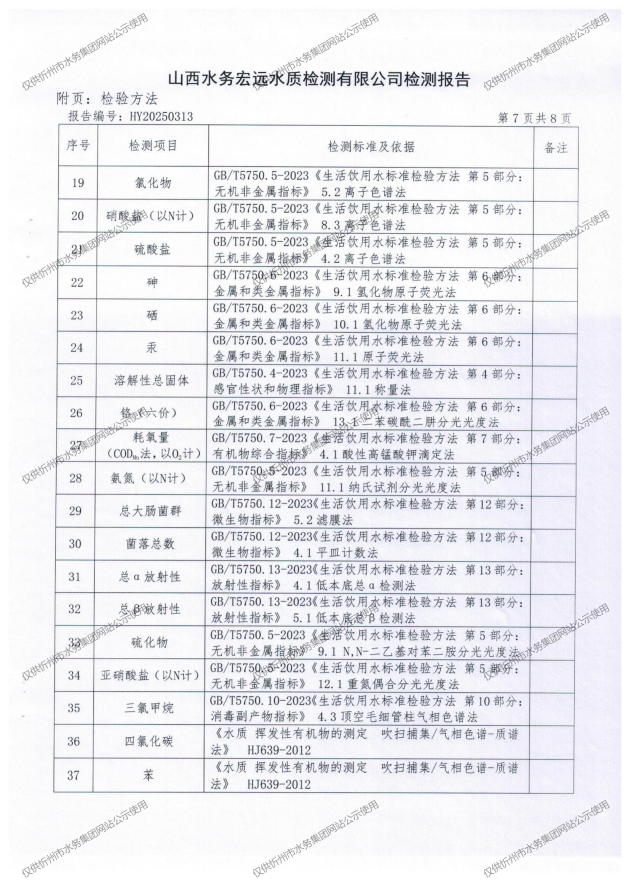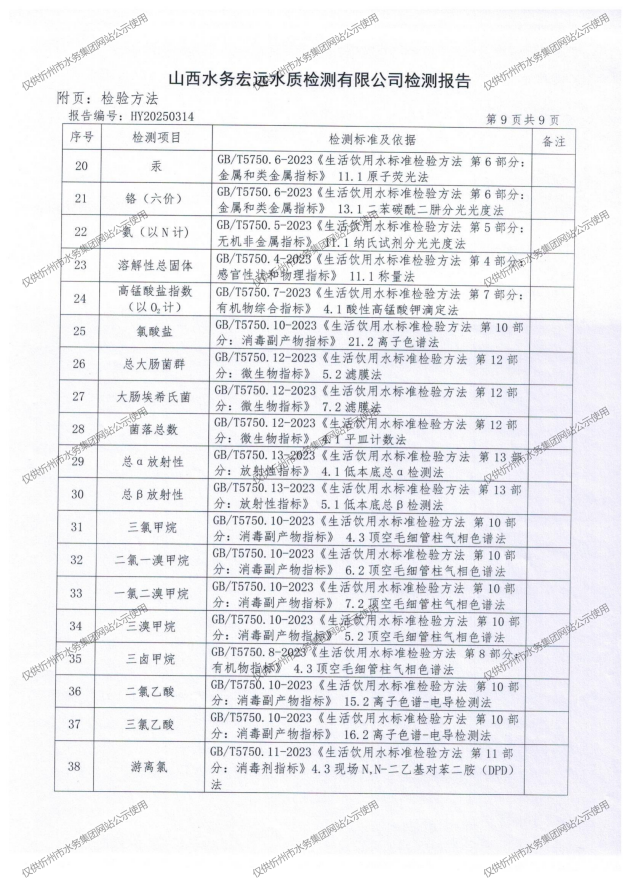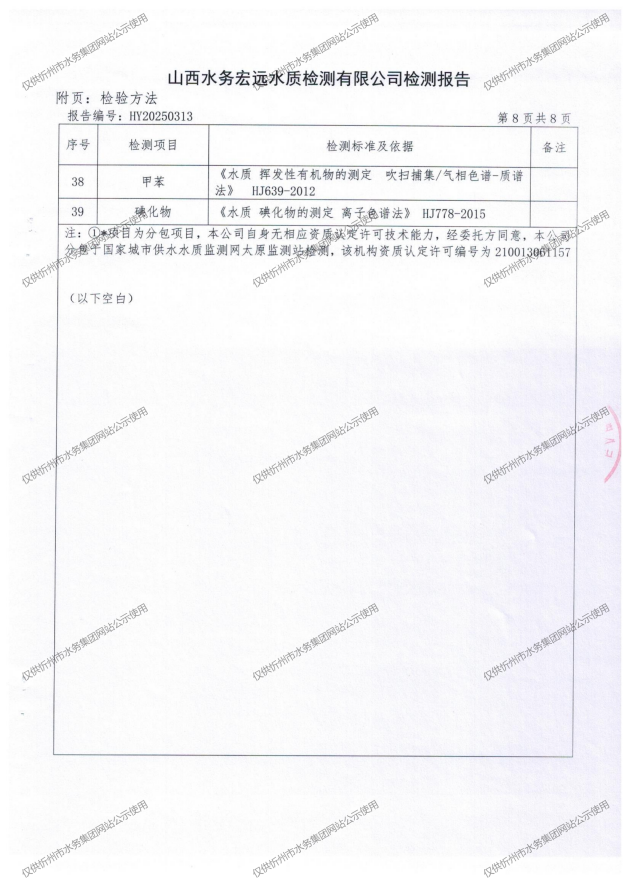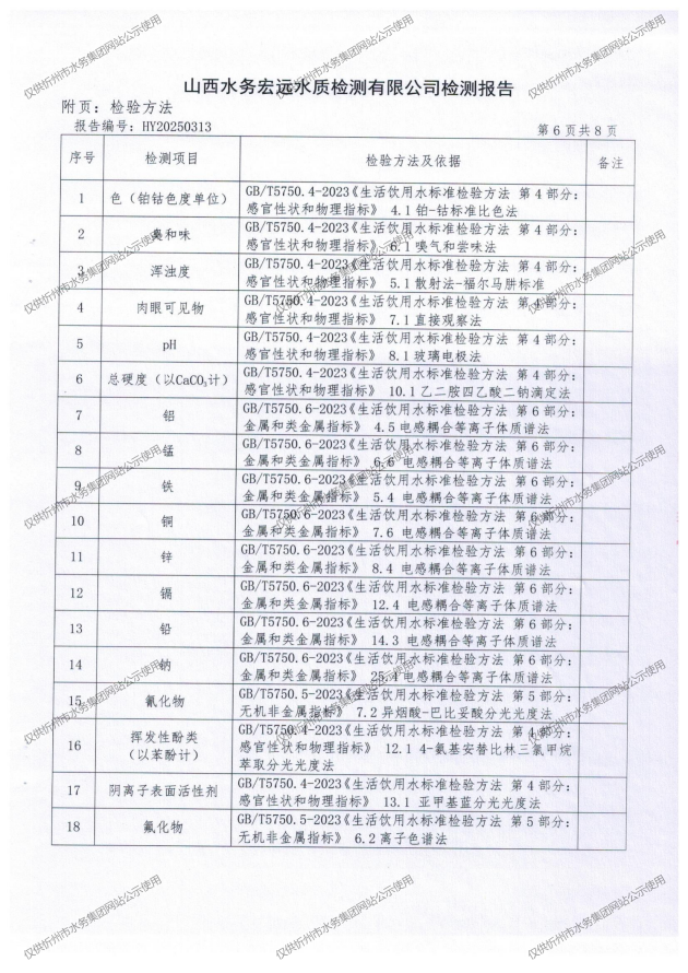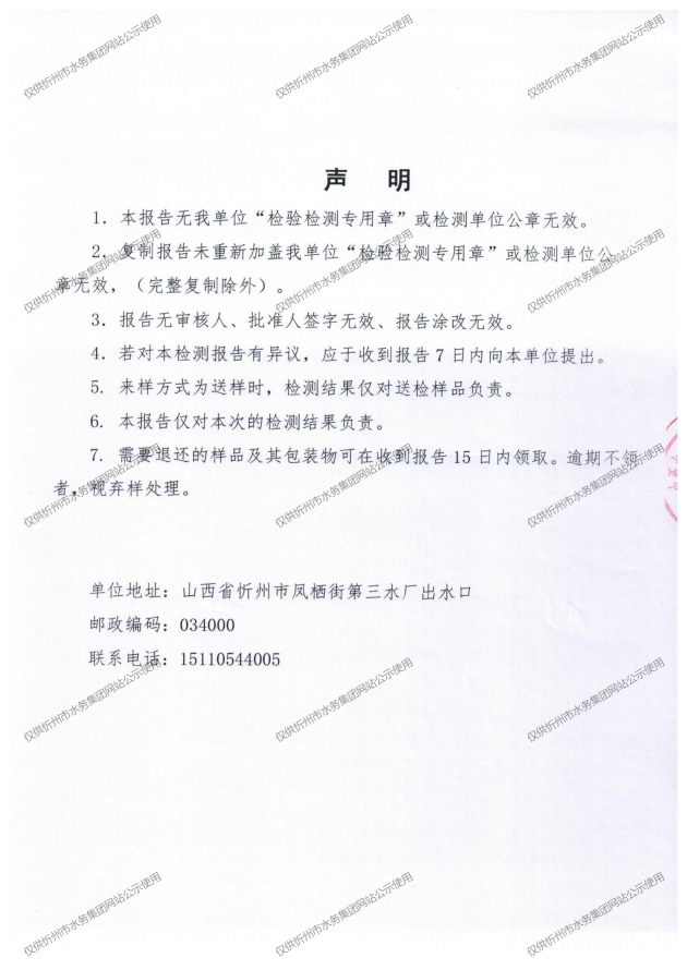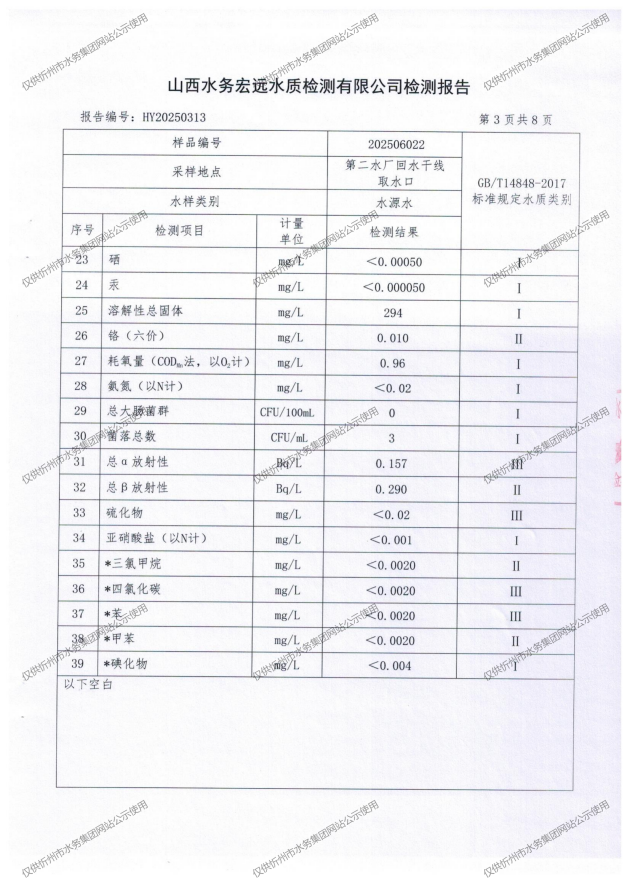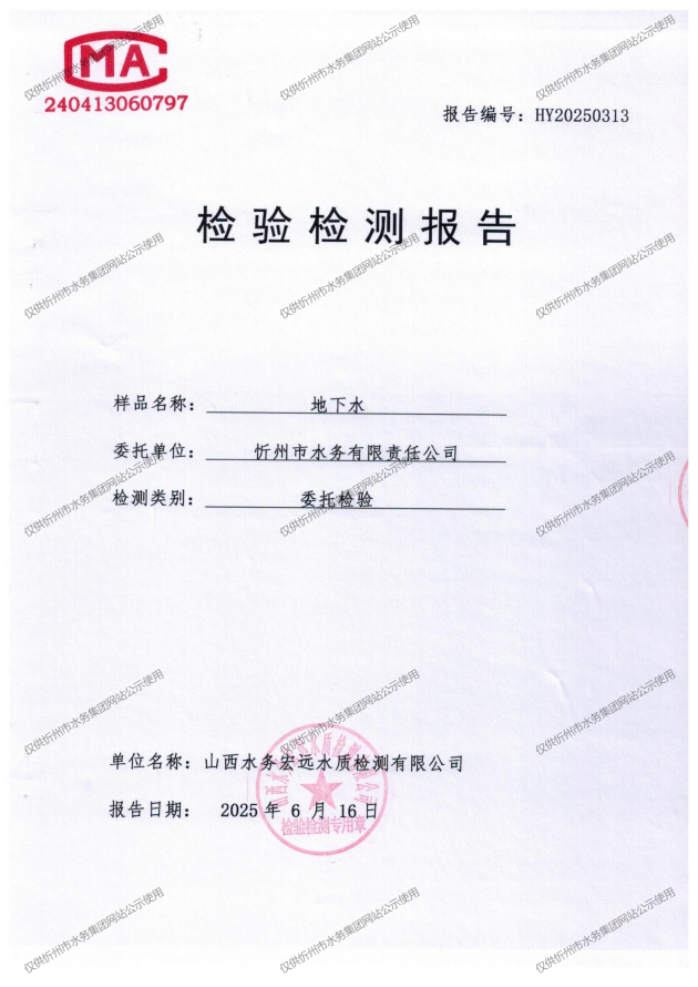 忻州城區(qū)公共供水水源水、出廠水、管網水、管網末梢水2025年6月份水質信息公示