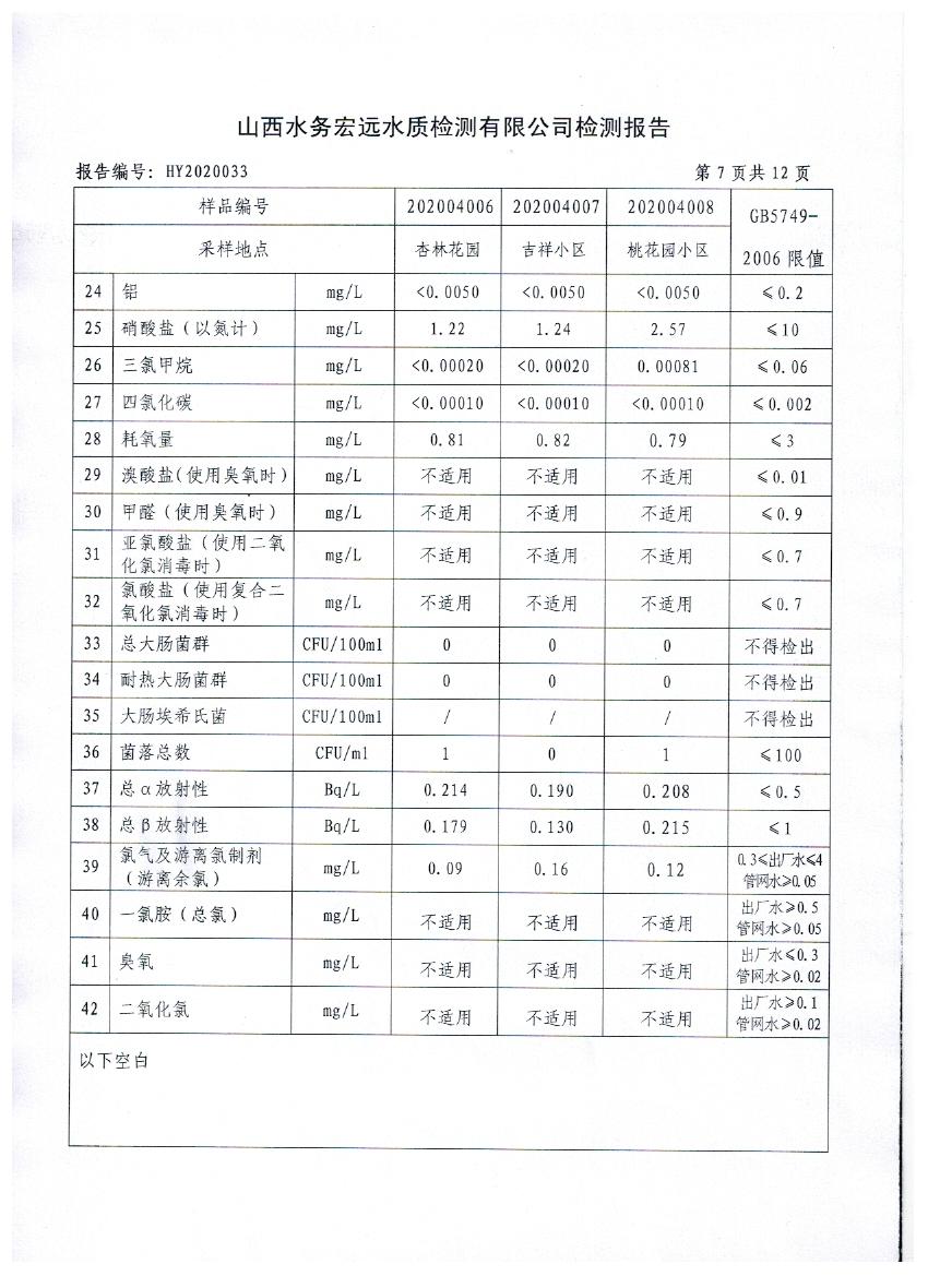 忻州城區(qū)公共供水水源水、出廠水、管網(wǎng)水、管網(wǎng)末梢水2020年4月份水質(zhì)信息公示