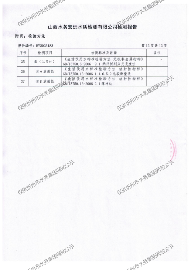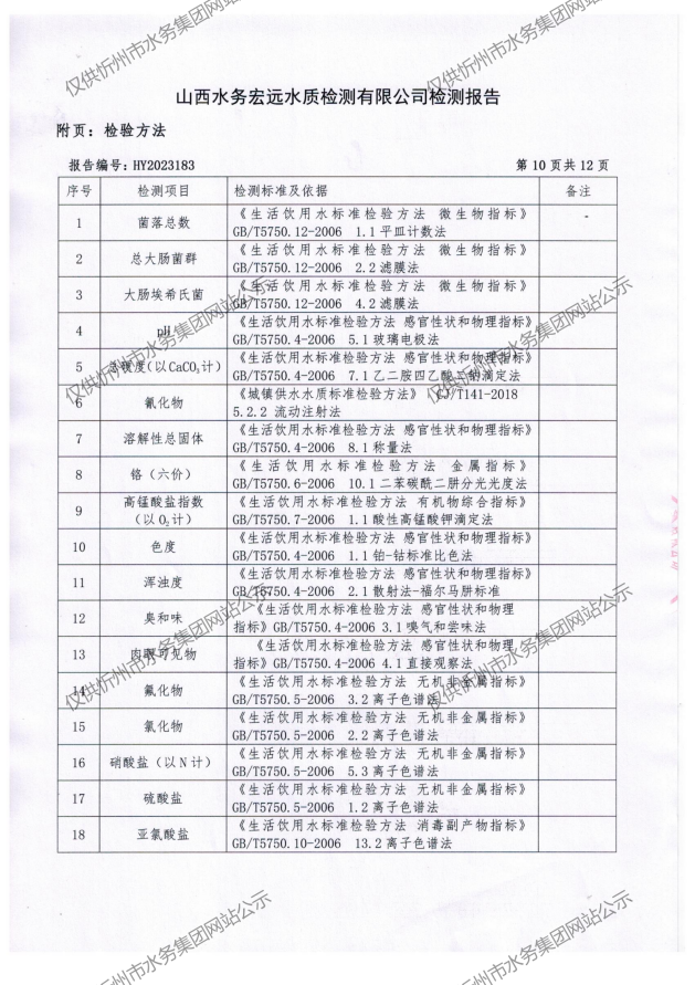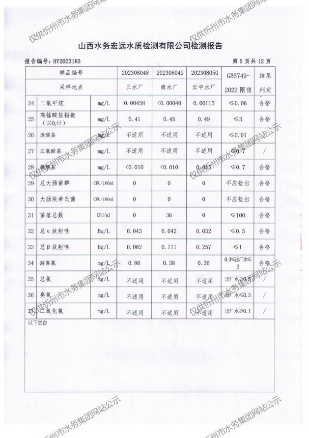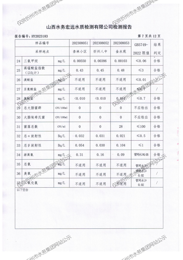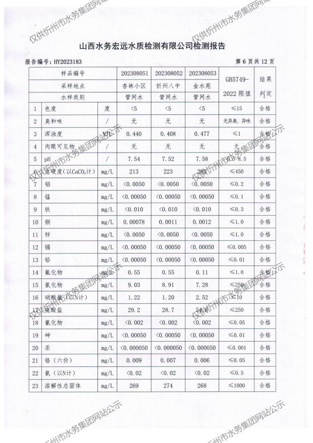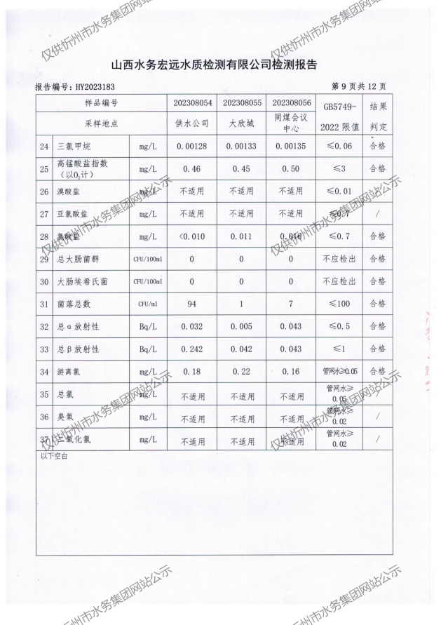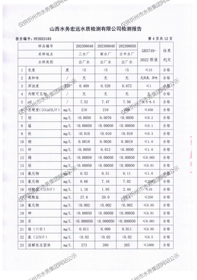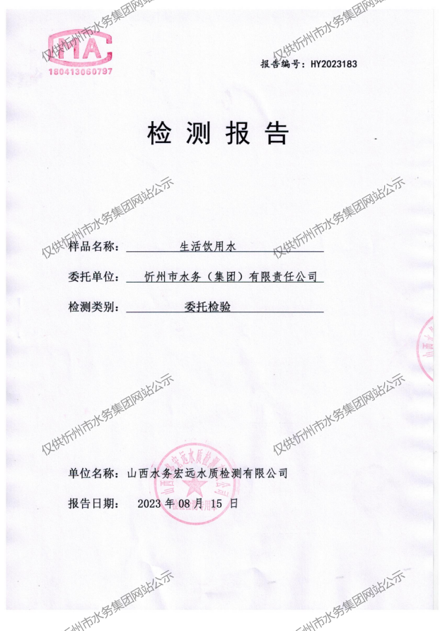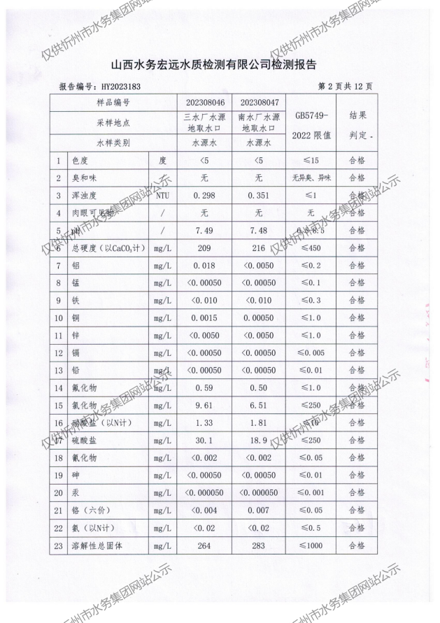 忻州城區(qū)公共供水水源水、出廠(chǎng)水、管網(wǎng)水、管網(wǎng)末梢水2023年8月份水質(zhì)信息公示